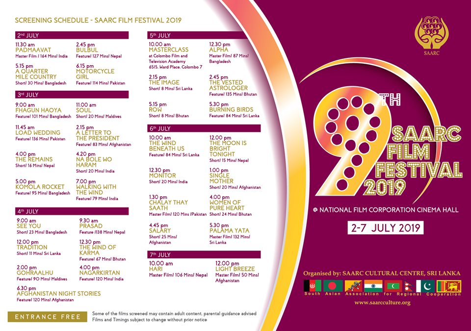 ‘नवौं सार्क फिल्म फेष्टिवल’ शुरु भएको छ । श्रीलंकाको नेशनल फिल्म कर्पोरेशनमा आजबाट शुरु भएको फेष्टिवल ७ जुलाई सम्म चल्नेछ ।