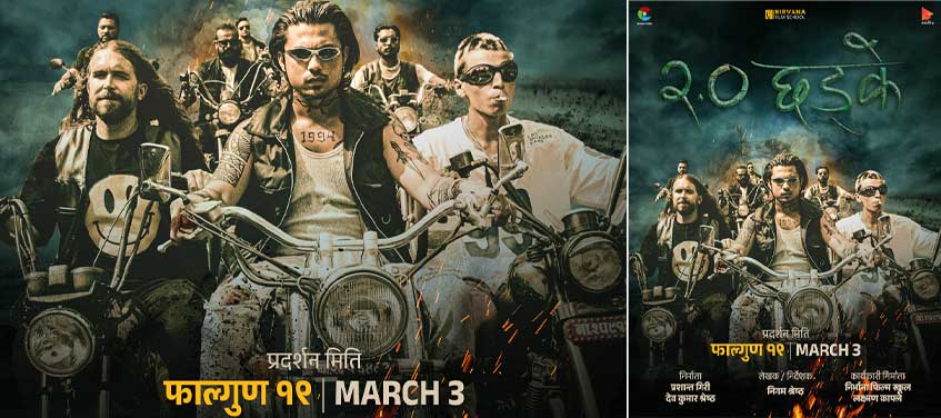 फस्ट लुक्समा चलचित्रमा मुख्य अभिनेताद्धय सौगात मल्ल, विपिन कार्की र अभिनेत्री सृष्टी श्रेष्ठलाई प्रस्तुत गरिएको छ । -