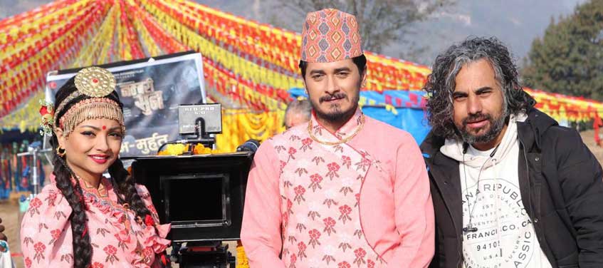 आर्यन सिग्देल, प्रदीप खड्का र पल शाहले एकसाथ अभिनय गरिरहेको चलचित्र ‘पुजार सार्की’को छायाङ्कन चलिरहेको छ । -
