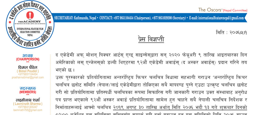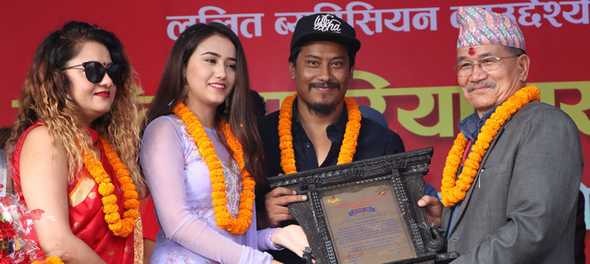 चलचित्रमा समाबेश ‘कालो चस्मा लाउ है मैया’बोलको गीत सार्वजनिक गर्दै प्रदर्शन घोषणा गरिएको हो । -