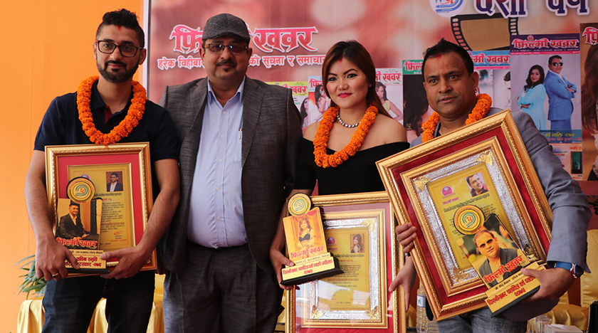 फिल्मीखबरका सम्पादक शान्तिप्रियको सभापतित्वमा सम्पन्न समारोहमा बरिष्ठ अभिनेत्रीद्वय बसुन्धरा भुषाल र चैत्यदेवी सिंह, बरिष्ठ संगीतकार शम्भुजित बासकोटा, बरिष्ठ कलाकार तथा निर्देशक मोहन निरौला, बरिष्ठ अभिनेता सुनिल थापा, बरिष्ठ अभिनेता सरोज खनालको आथित्यता रहेको थियो । समारोहमा कलाकार तथा निर्देशक दिपाश्री निरौला, कलाकार केदार घिमिरे माग्ने बुढा, कलाकार निर्मल शर्मालगायत थुप्रै चलचित्रकर्मीहरुको उपस्थिति रहेको थियो ।
